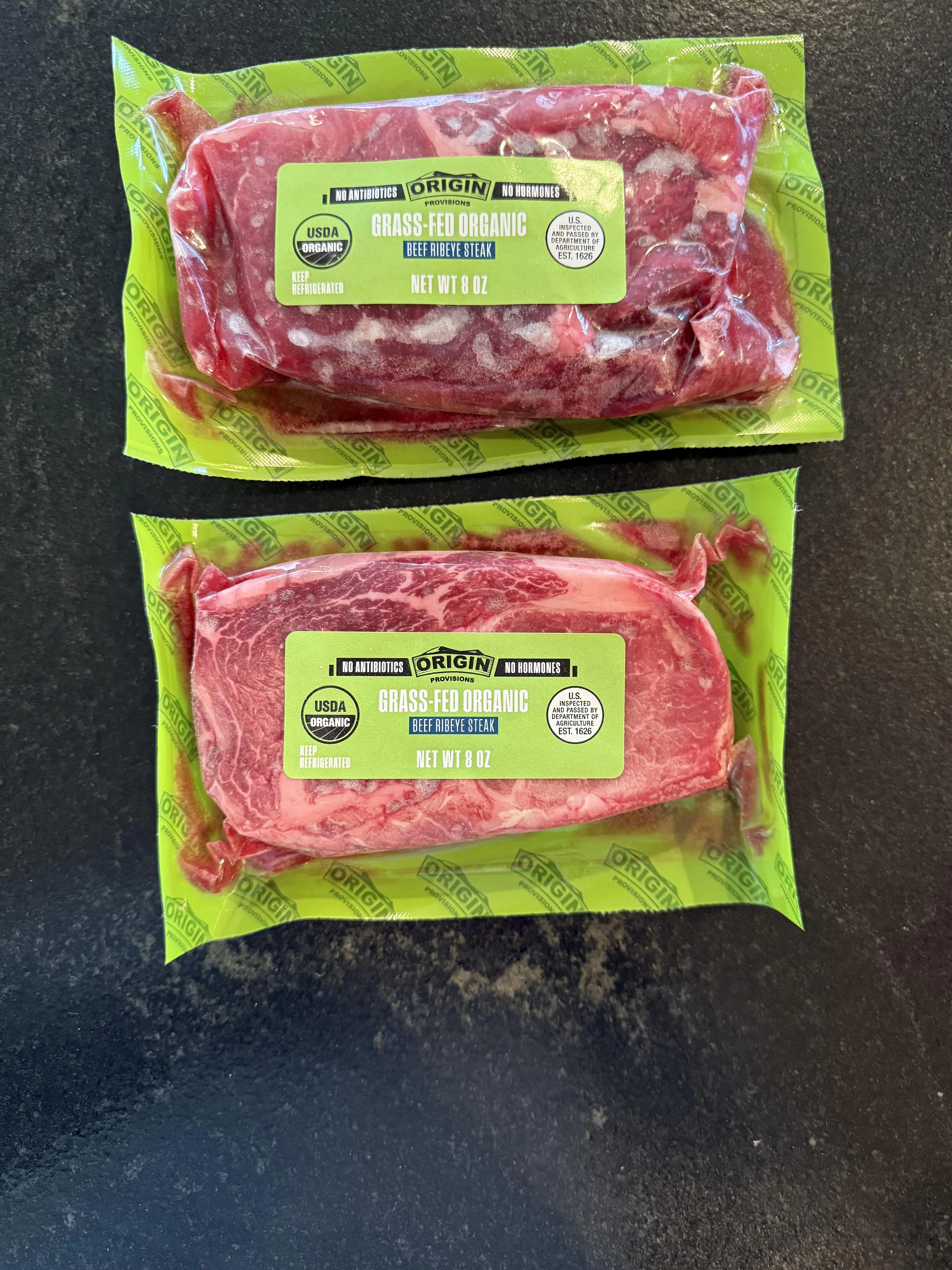 8 × 8 oz organic grass-fed ribeye steaks